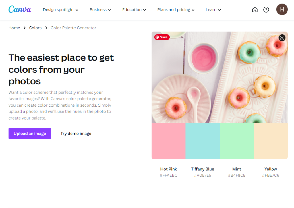 If there’s a graphic or photograph that you want to use to create your palette Canva has got you covered!