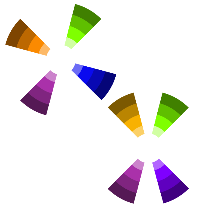 These styles of color wheels are also used to illustrate color schemes, which are used to create color palettes.